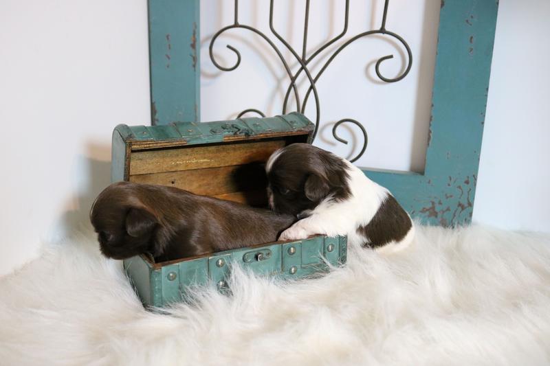 this little girl we call DIOR she was born aug 28th she is the dark chocolate and white parti color.. she is the smallest and a little spitfire... she will also be offered at 2500 with ckc registration or 3000 with akc.full registration.. she is maturing into a beautiful little girl.. we held her back because she was the smallest one but she has learned everything before the others.. she is doing great and is staying very small. .she is set up for her last vaccines on nov 20th and is ready for just about anything...